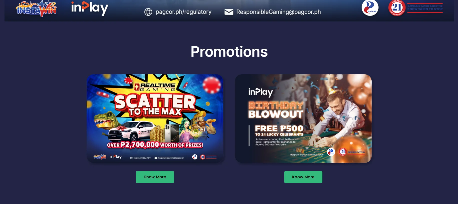InPlay is licensed under PAGCOR for the Philippines market and focuses on live casino gaming with high-definition streaming and interactive dealers. Players can enjoy themed casino halls such as Sexy Hall, Asia Hall, Theme Hall, and Live Hall, which add a more personalized and engaging experience.