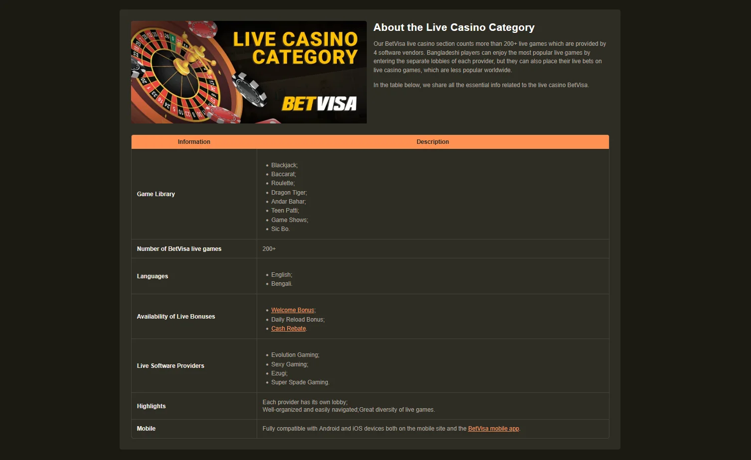 - 25% Live Casino & Table Cashback